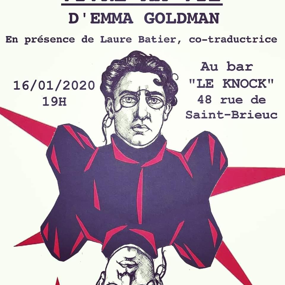 16 janvier : Au bar Le Knock à partir de 19h présentation et discussion autour du livre « Vivre ma vie » d’Emma Goldman. En présence de Laure Batier, co-traductrice.