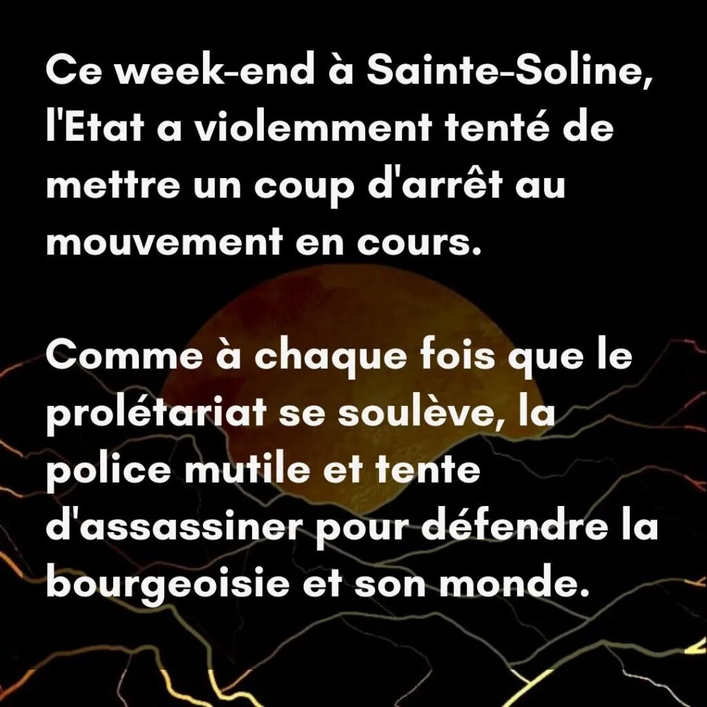 Ce week-end à Sainte-Soline, l’Etat a violemment tenté de mettre un coup d’arrêt au mouvement en cours. Comme à chaque fois que le prolétariat se soulève, la police mutile et tente d’assassiner pour défendre la bourgeoisie et son monde.